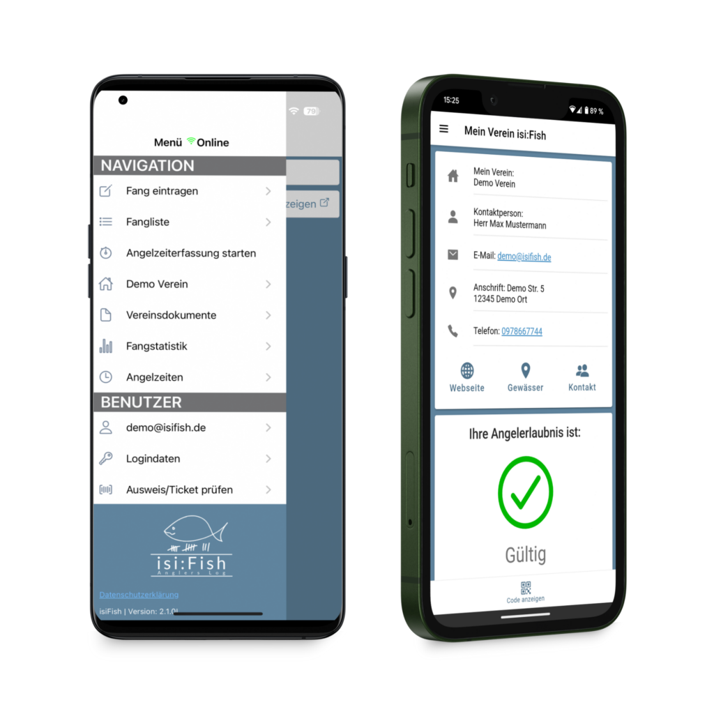 - Digitale Angelerlaubnis & Vereinsdaten: Deine Angelerlaubnis und Vereinsinformationen hast du immer dabei – digital und sofort verfügbar.